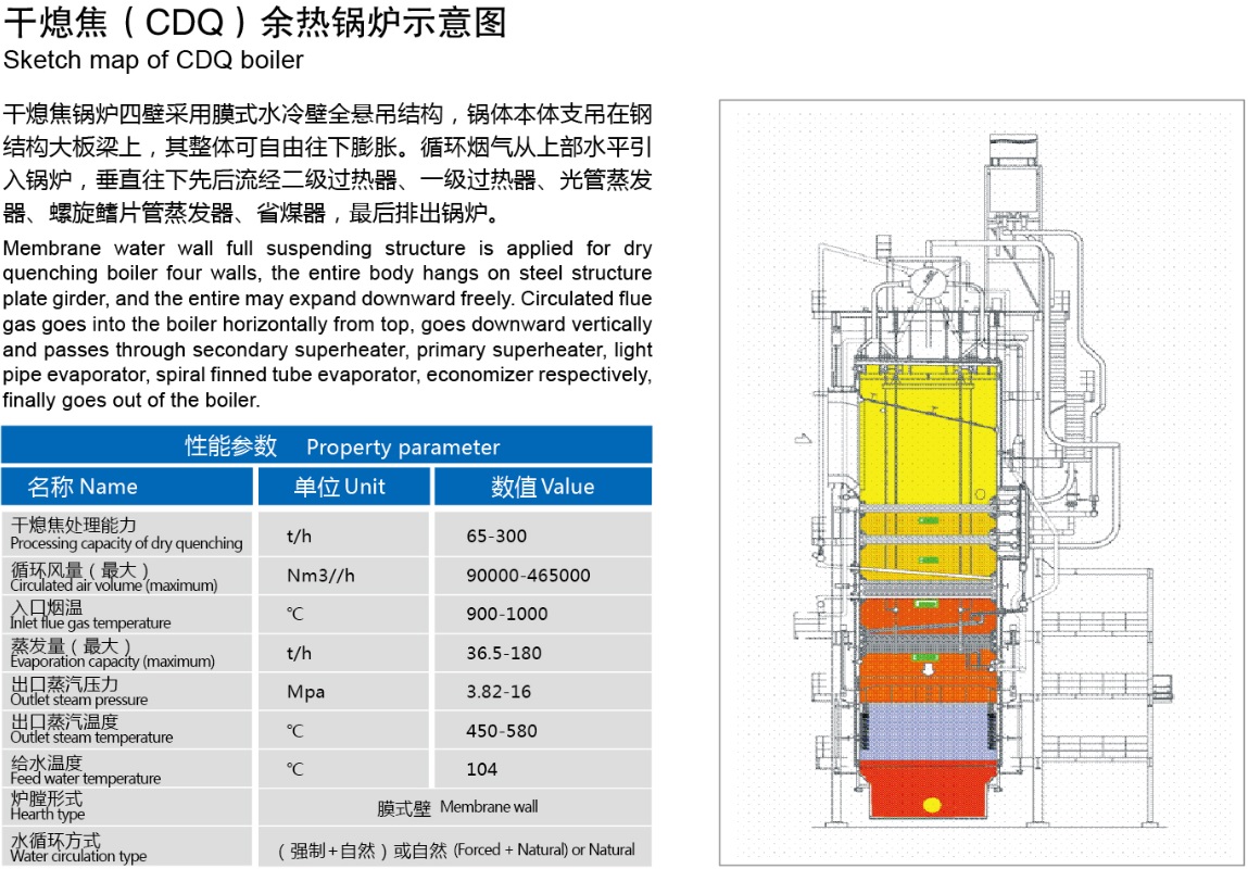 公司干熄焦余熱鍋爐產(chǎn)品在吸收國外先進(jìn)技術(shù)和經(jīng)驗(yàn)基礎(chǔ)上,結(jié)合我國具體實(shí)際,在設(shè)計(jì)、工藝、材料、制造及檢驗(yàn)等環(huán)節(jié)嚴(yán)格控制,對(duì)鍋爐中最薄弱的環(huán)節(jié)采取特殊防護(hù)措施,以最大限度提高鍋爐熱效率和使用壽命;公司研制的高溫高壓干熄焦余熱鍋爐被列入國家863計(jì)劃、國家火炬計(jì)劃和江蘇省科技成果轉(zhuǎn)化專項(xiàng)資金扶持,項(xiàng)目研究成果榮獲國家科技進(jìn)步二等獎(jiǎng)、中國冶金科學(xué)技術(shù)獎(jiǎng)一等獎(jiǎng);同時(shí)高溫高壓干熄焦余熱鍋爐被列入國家重點(diǎn)新產(chǎn)品和省高新技術(shù)產(chǎn)品,突破了余熱鍋爐防腐、密封、防膨脹等多項(xiàng)專利技術(shù),同時(shí)參與了YB/T 4255-2012《干熄焦節(jié)能技術(shù)規(guī)范》行業(yè)技術(shù)標(biāo)準(zhǔn)的制定;通過技術(shù)專利化、專利標(biāo)準(zhǔn)化戰(zhàn)略,構(gòu)筑產(chǎn)品市場核心競爭力。